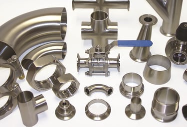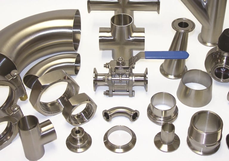 Sanitary fittings and valves are components used in high-purity industries like food, beverage, and pharmaceuticals to control and connect fluid flow.