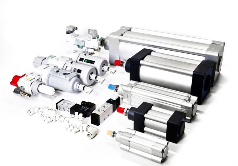 Pneumatic products are components that use compressed air or gas to perform mechanical work.